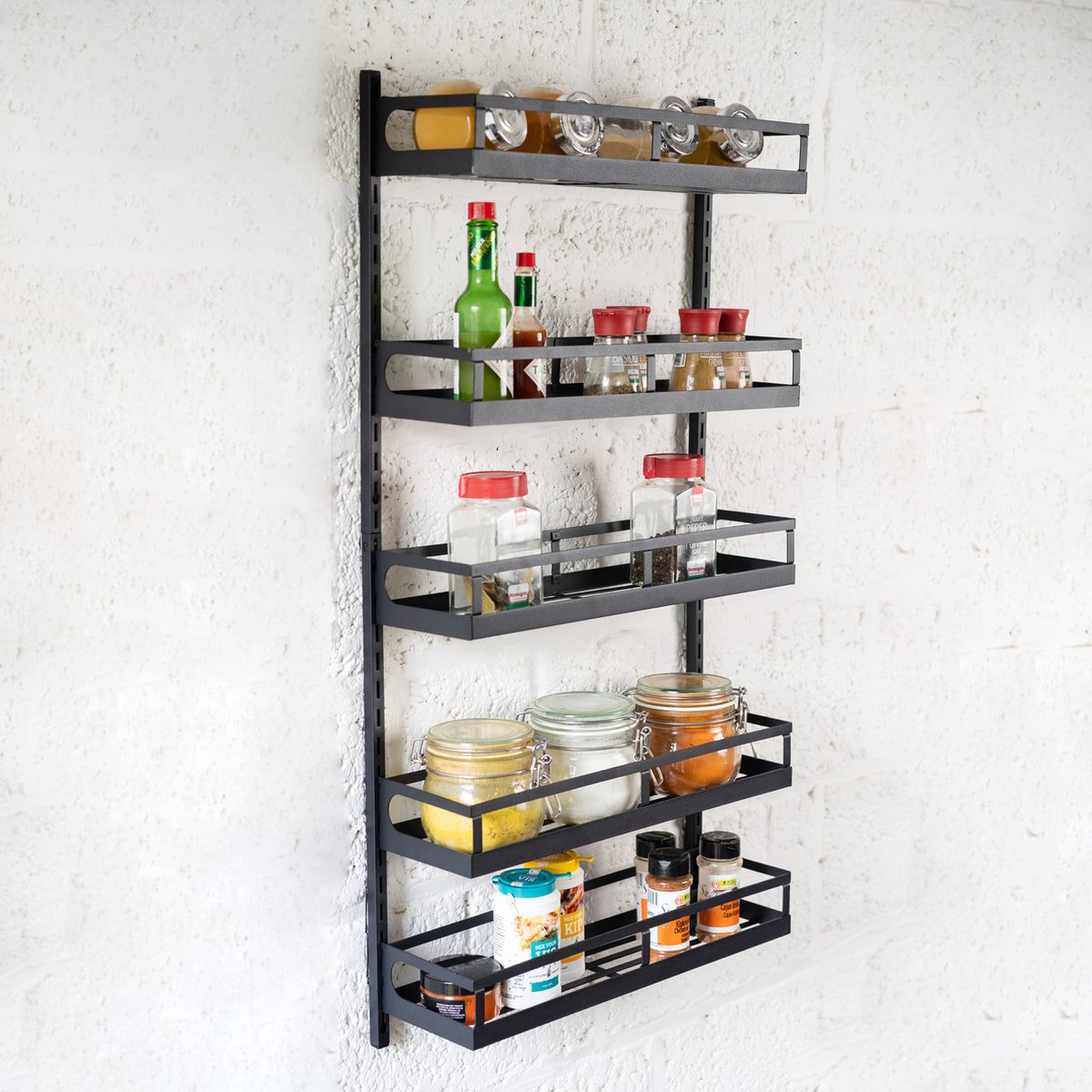 Flexibel. Verstelbaar. Stijlvol.Gebruik ‘m als één geheel of verdeel ‘m in twee. De extra brede manden zijn in hoogte verstelbaar en bieden ruimte aan potten, flessen en blikken. Inclusief bodemplaat voor kleine items én handige haken voor accessoires. Plakken of boren? Jij kiest.Alles wat je nodig hebt zit in de doos – zelfs een cadeautje.